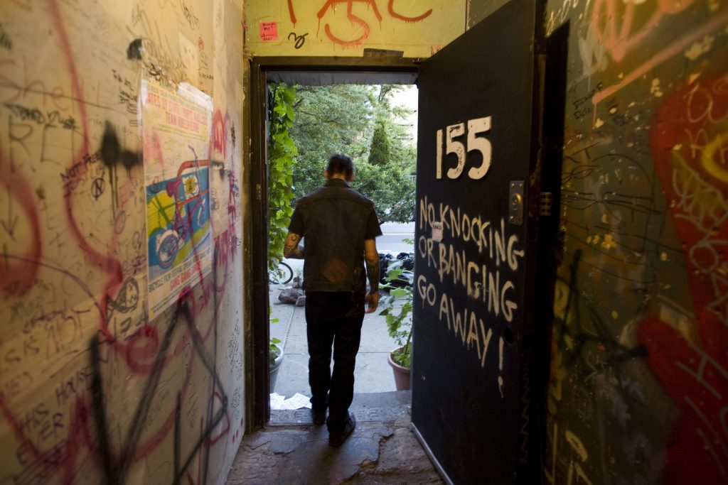 Mike lived there through the early years of C-Squat but left in protest shortly after 2002 when the house members, along with those of 10 other Lower East Side squats, decided to undertake the lengthy and turbulent task of bringing the building up to code and making the residents legal homeowners. He said he wanted no part of this massive change to the building’s culture. But by 2010 Mike was back, and he was trying to preserve some of the squat’s history before it was lost for good.