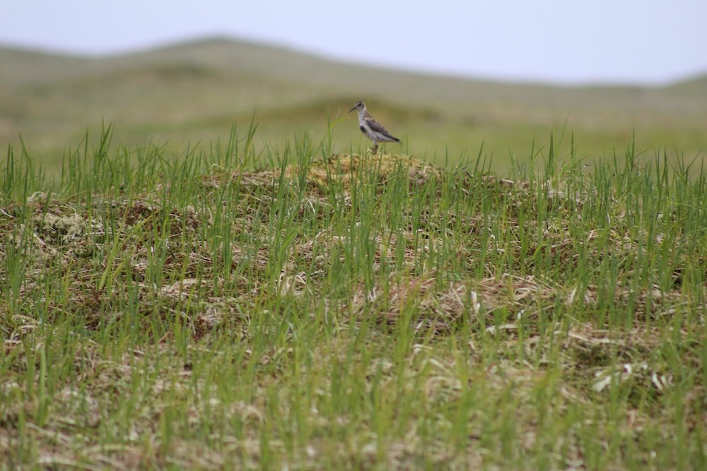 Our first archaeological site on Kiska was in a protected bay. Like many ancient archaeological sites, its significance for past humans was only visible in very slight changes to the vegetation and topography. The rocky beach gradually rose up to meet rolling tundra completely devoid of trees. Occasionally, we would glimpse sea otters or sea lions in the bay, which would watch us just as curiously as we watched them.
