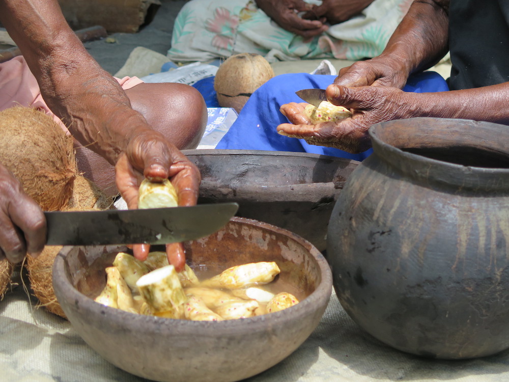 On a Wednesday morning in September 2015, our archaeological team had just finished the technical drawings of a site we had excavated. Kaivakovu village elders—who had been busy with community meetings—arrived to take us on a survey of their ancestral sites. Each at least 40 years my senior, the elders took off at a startling pace; they threaded a trail through numerous named and storied places situated on ancient beach plains and hillsides. Wherever we saw evidence of recent gardening activity, there were physical remains of the past spilling out of the ground. At one site (called Maivipi), one of the elders had just dug scores of banana plants into the ground. Each plant was now surrounded by dozens of recently disturbed pottery sherds. At another site, we saw once-buried shells and animal bones strewn across a large communal garden area.