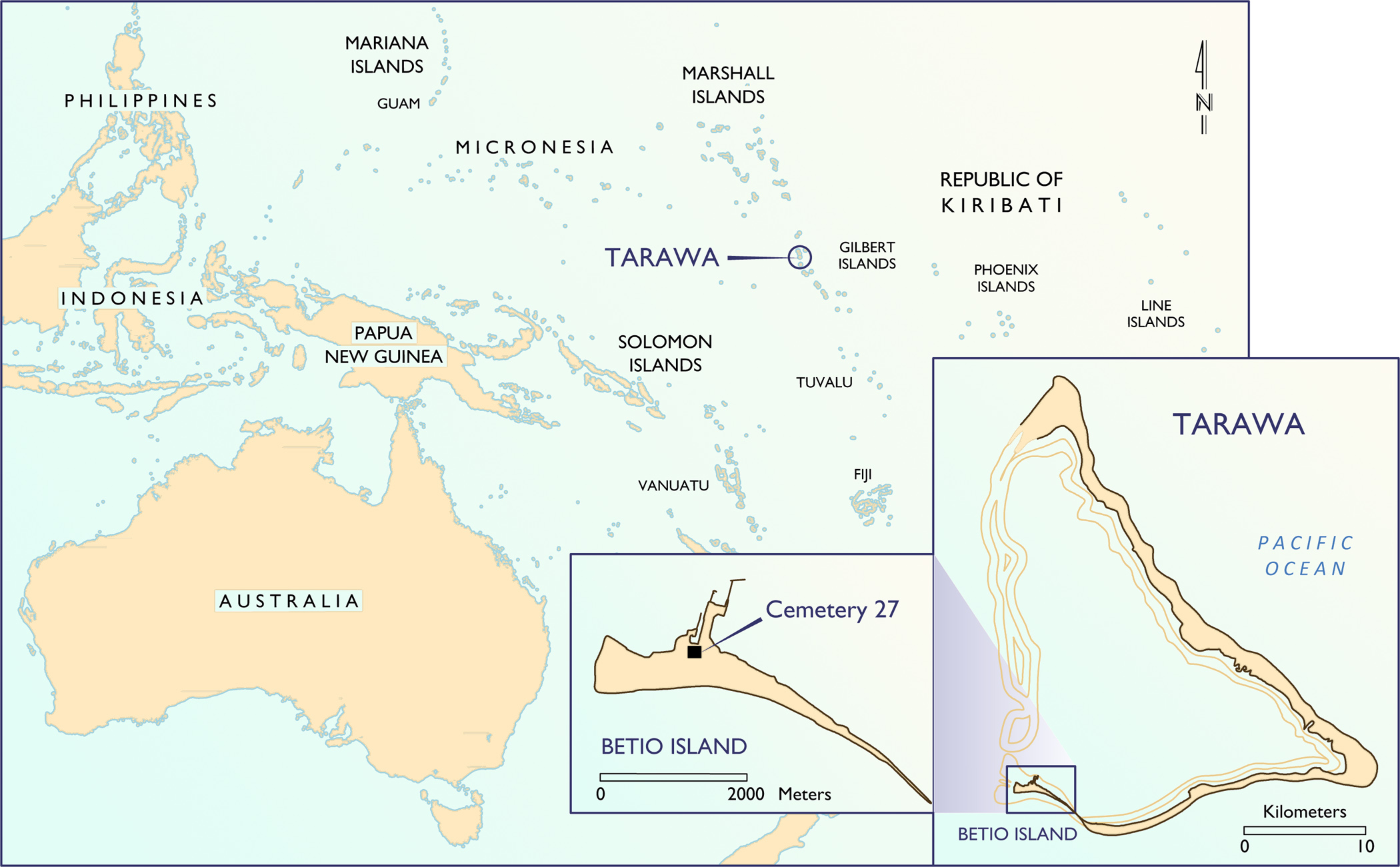The island of Betio—a side jewel in the necklace-shaped Tarawa Atoll—has an area of less than one square mile, but it played an outsized role in 20th-century history. For centuries, Betio, part of the Republic of Kiribati, has been home to a small population of seafaring Pacific Islanders who fished to feed their families. Their descendants, more than 16,000 of them, still inhabit the island today and speak the traditional Kiribati language.