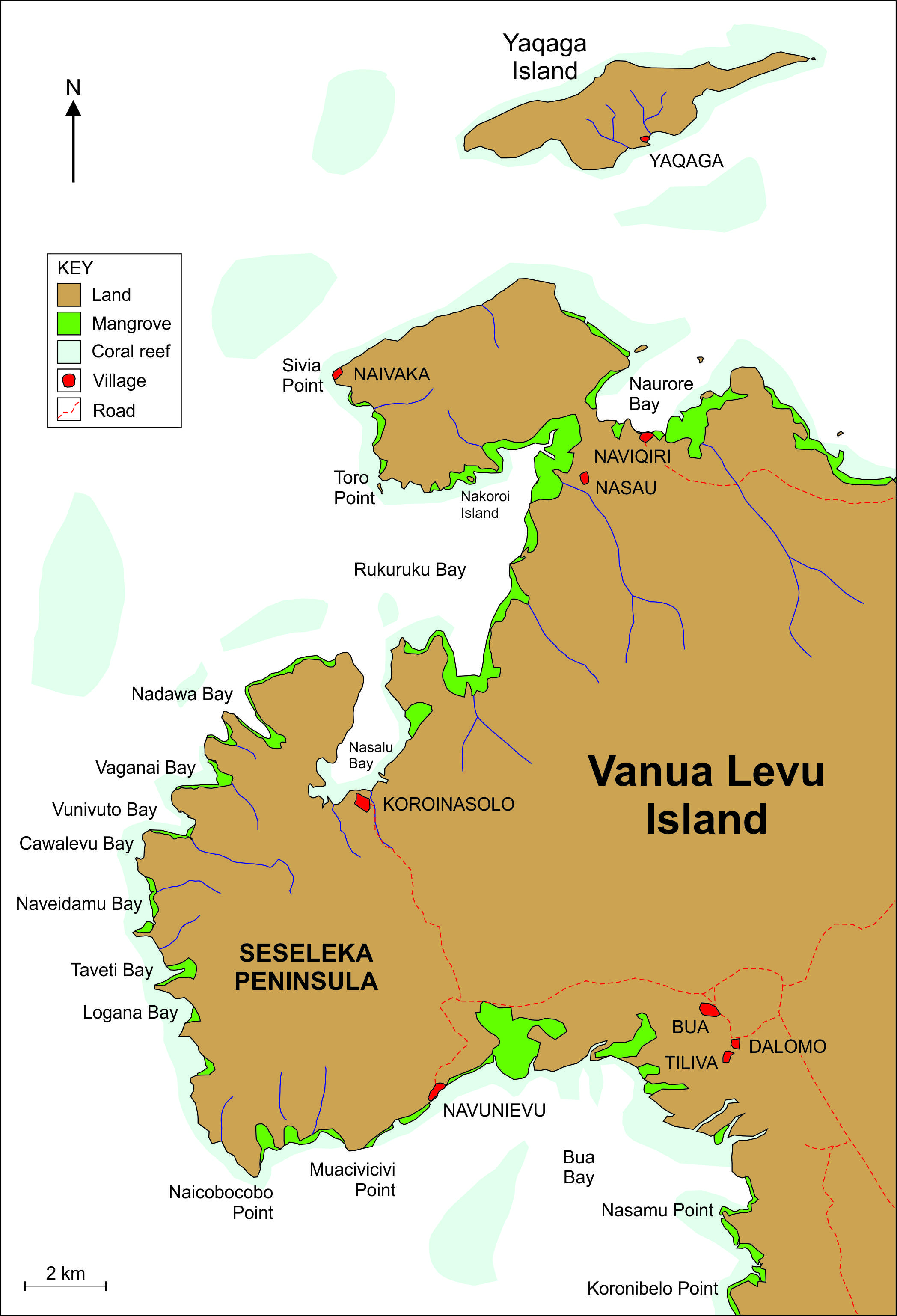 Fiji’s hillforts are called koronivalu (literally, “war towns”). Recent field surveys have focused on the remote western part of Vanua Levu, the second largest island in the archipelago. This was one of the first areas to be regularly visited by Europeans, who came to trade for sandalwood and bêche-de-mer (sea cucumber) and left a number of written descriptions of the hillforts. The earliest account dates from 1808, but it was Commodore Wilkes of the United States Exploring Expedition who in the 1840s noted that there was “a town perched on the very top” of Seseleka. There were others around as well.