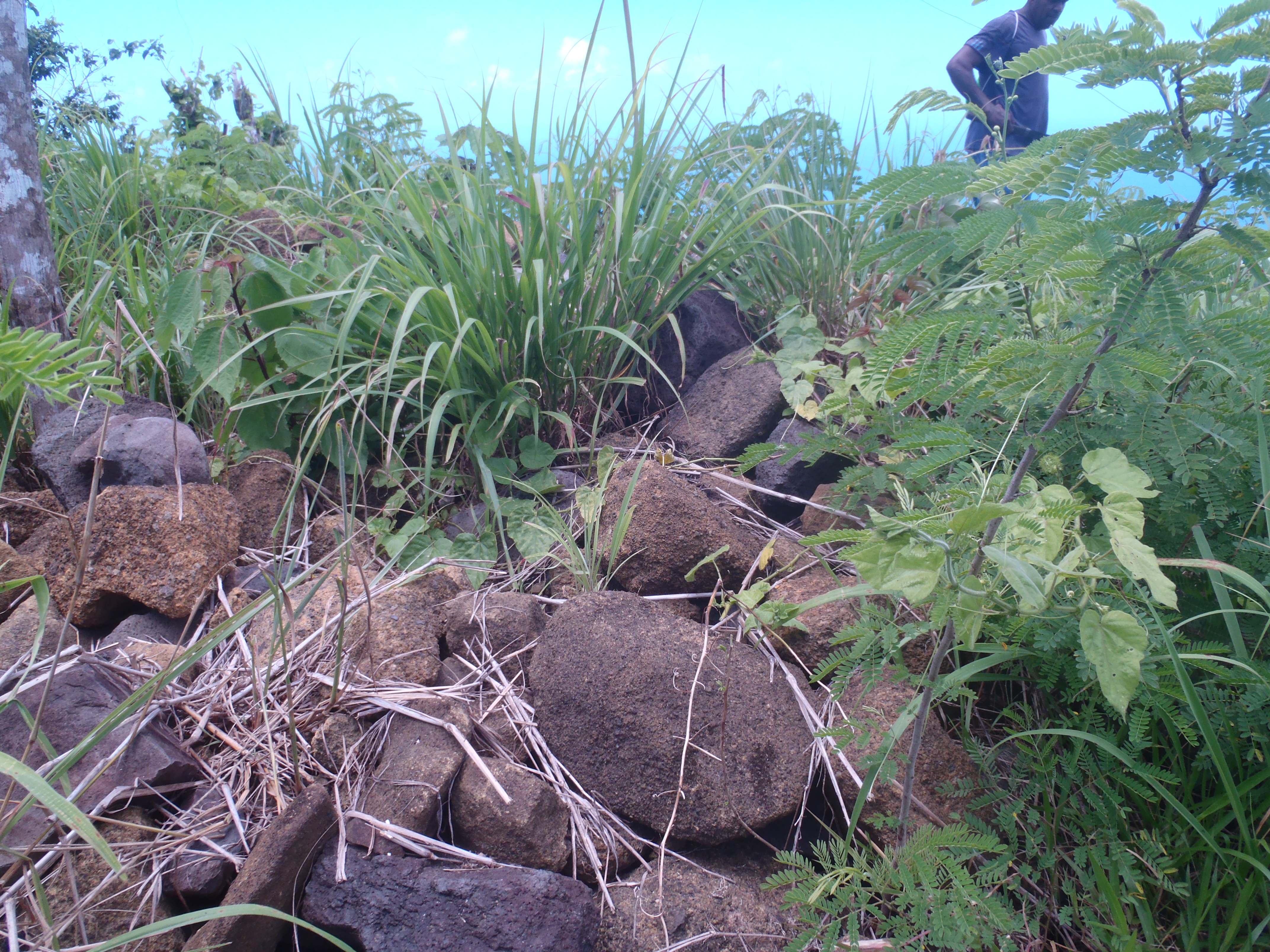 The first signs of fortification made me forget my fatigue. There was a pile of rocks, roughly oval-shaped, representing a yavu, or house foundation. Its position made clear it was a guardhouse, intended to check the advance of unwanted visitors to the mountaintop community. There were more guardhouses at regular intervals, and then, across the ridge, the remains of stone walls and defensive ditches. When functional 200 years or more ago, these ditches likely featured rows of sharpened sticks—designed to skewer would-be aggressors—protruding from their bases.