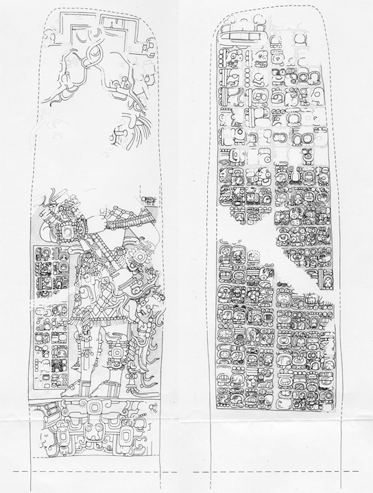 The most significant event documented on Stela 3 is Lord K’an II’s initial defeat of Naranjo, around the year 626. Just as he invoked a militaristic god to initiate war, Lord K’an II takes pains to credit Snake Lord, a deity who guided his activities. The glyphs that document these events are located where Stela 3 is broken in half, so Zender could not read them as well as the others. But that brings us to another interesting chapter in this story.