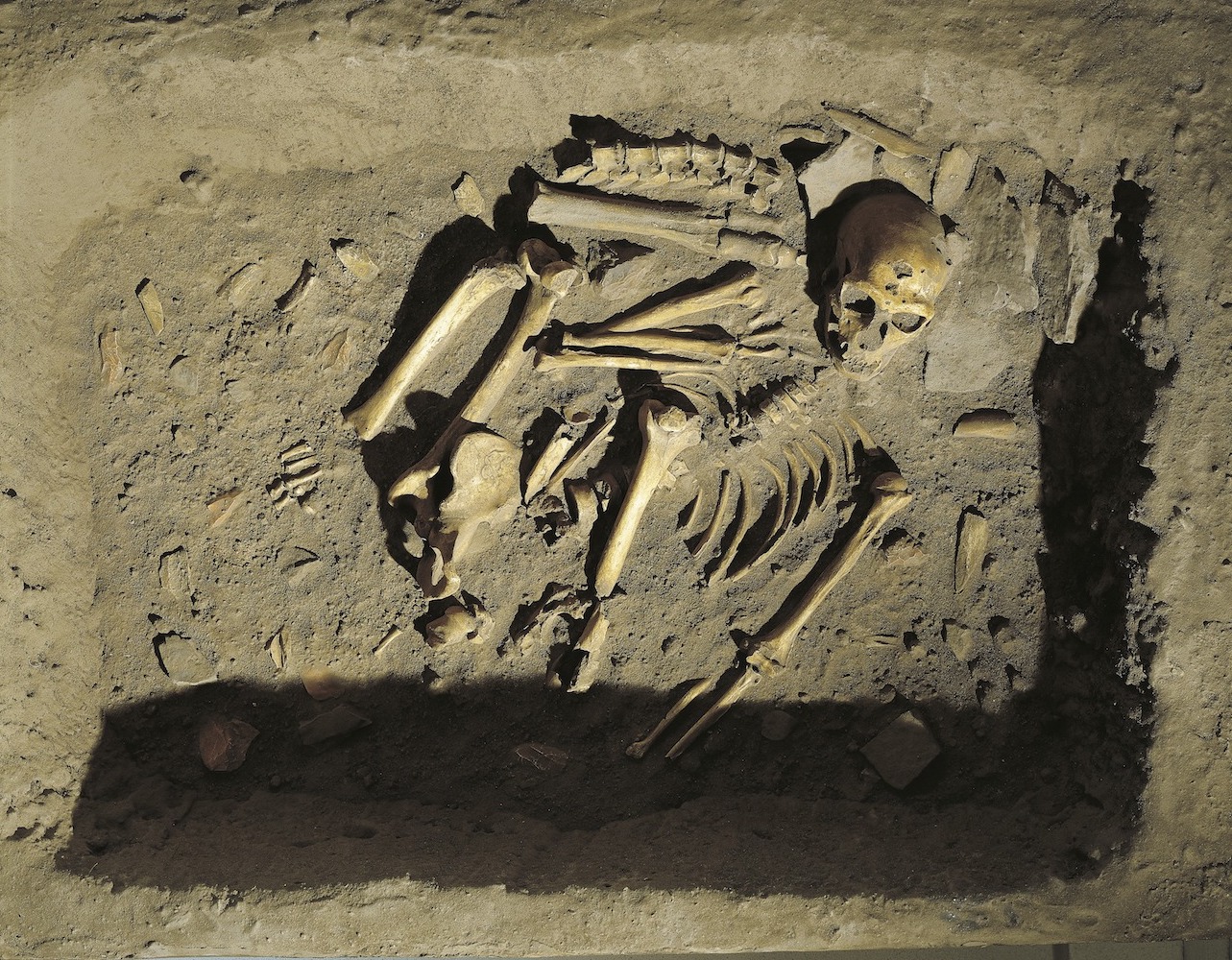 What’s undeniable is that our early Homo sapiens ancestors began to create increasingly elaborate burial rituals. At around 24,000 years ago in what is today Sunghir, Russia, for example, a boy of about 12 years of age and a girl of about 9 were buried together. The research paper describing the remains says they were “head to head, covered by red ocher, and ornamented with extraordinarily rich grave goods.”