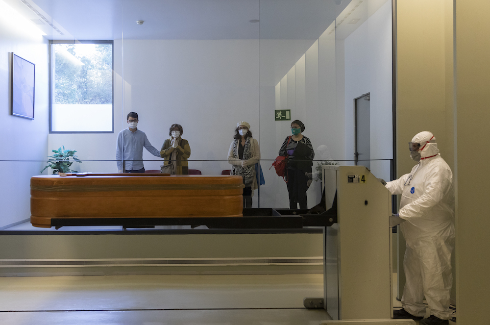 Increasingly, this kind of physical separation between loved ones and the newly dead happens even when the cause of death isn’t coronavirus. When a woman in Wisconsin died of cancer in March, only 10 people were allowed to attend the funeral owing to limits enforced on public gatherings. The priest and nine grandchildren went inside the Catholic church, while outside the woman’s four adult children watched using phones and tablets inside their car.