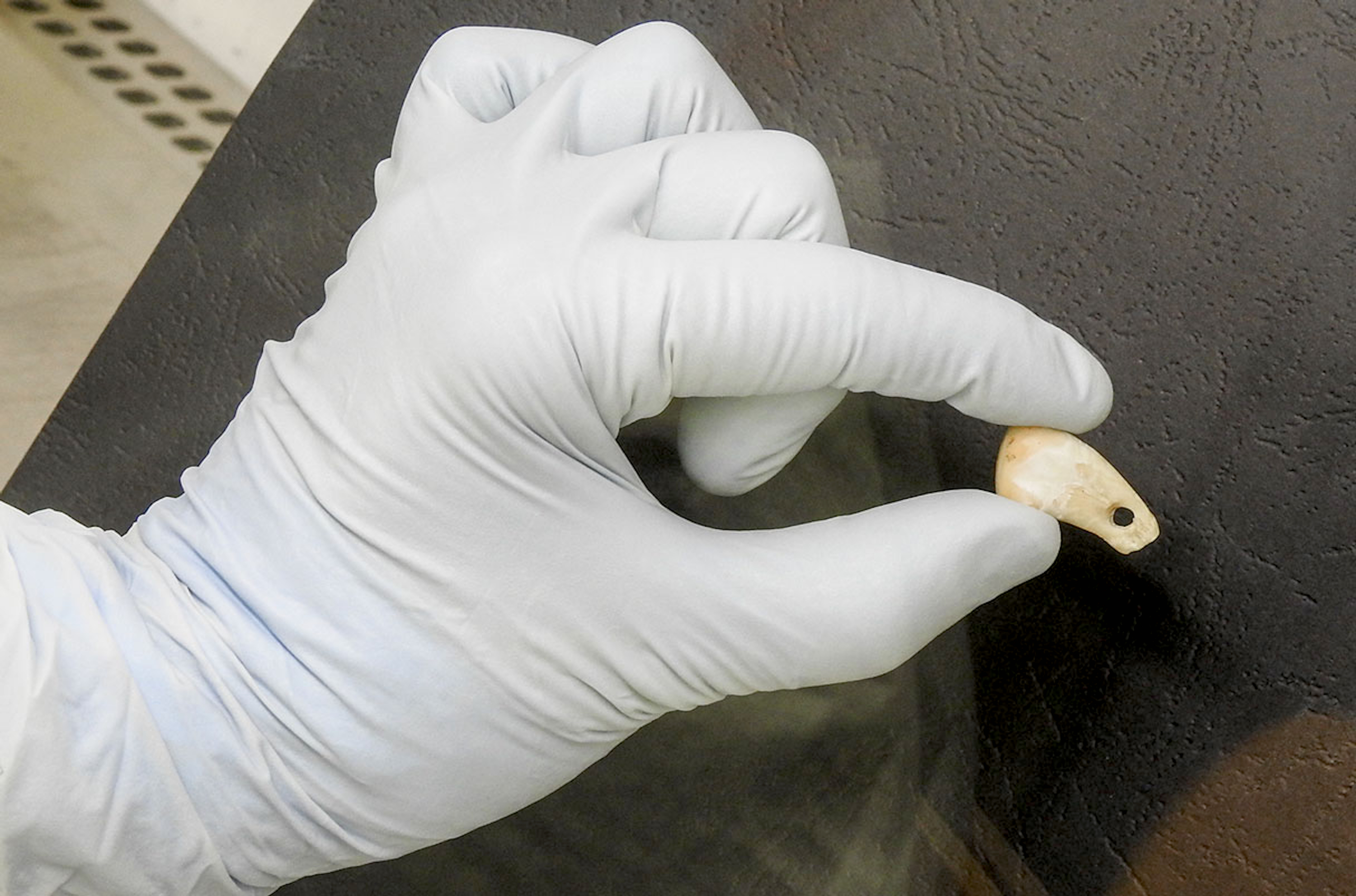 The method can only be used for artifacts made from bone or tooth as these materials are porous and can soak up human DNA from repeated contact with bodily fluids (sweat, blood, saliva). Luckily, the bones and teeth of animals (and sometimes humans) were widely used throughout the past to create everyday tools, sacred items, and personal adornment.