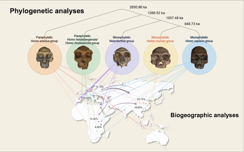 The Harbin team generated a family tree, or phylogeny, of human lineages to work out how the species relates to modern humans. This tree is based on morphological data from 95 largely complete fossil specimens of different hominin species living during the Middle Pleistocene, including Homo erectus, Homo neanderthalensis, Homo heidelbergensis, and Homo sapiens, along with their known ages. The tree also suggests that five previously unidentified fossils from northeastern China are from Homo longi.