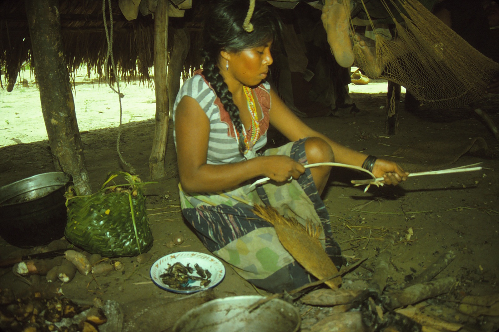 Once a week or so, hunters return to camp with a cayman, anteater, deer, or large bird. While meat is valued for its protein and fat, plants get the Pumé through the wet season. During this lean time of the year, women and children forage almost exclusively for roots and bring in about 85 percent of the calories. In most temperate and equatorial environments like this one, roots, tubers, seeds, beans, nuts, fruit, and berries are all staples for survival. Pumé women and children supply these bottom-line calories and process them into edible foods.