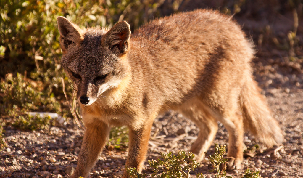 The critically endangered island foxes on San Nicolas Island, California, are a diminutive descendent of grey foxes from the mainland. Island foxes weigh between 1 and 3 kilograms.