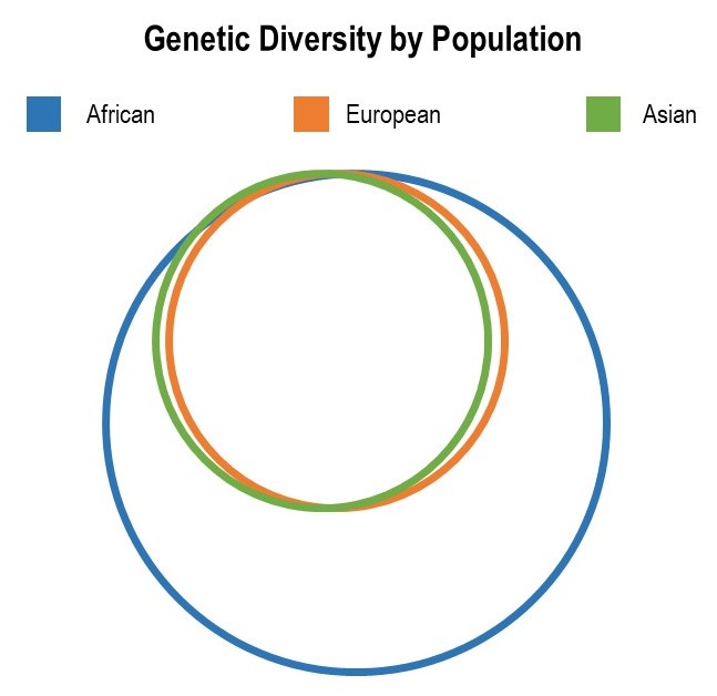 Today genetic diversity within those who live in Africa continues to measurably exceed the genetic diversity of people outside Africa across half a dozen metrics of variability.