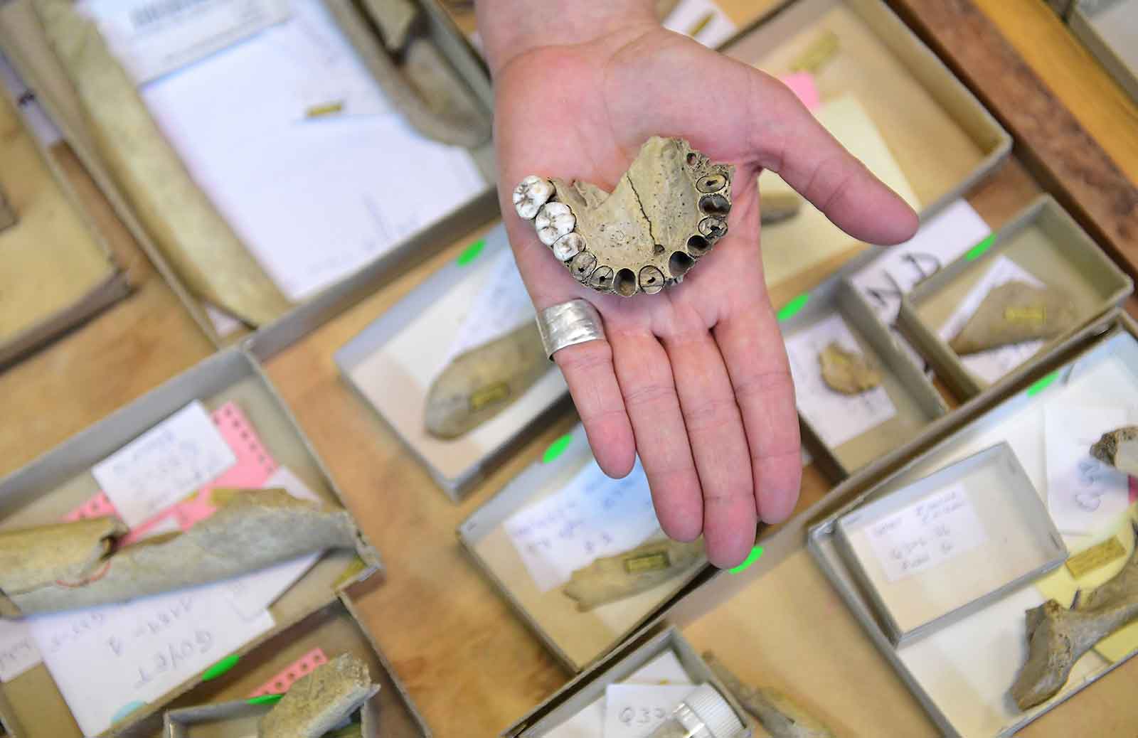 Let’s start at the top end—the mouth. Tooth enamel is the most durable substance in the human body, and Neanderthal teeth have become a rich source of information. Much of this comes from dental calculus—not a bizarre form of tooth-based math, but rather hardened tooth plaque that can contain microscopic plant and microbial remains, and even trace DNA.