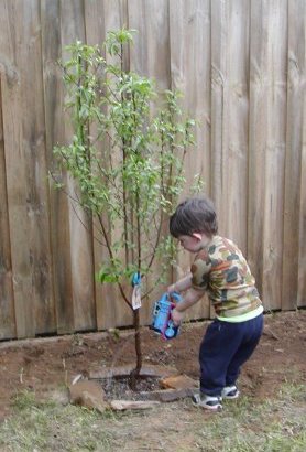 When it was time to plant the peach tree atop the placenta, Burns hesitated, feeling as if she was “saying goodbye to something very special that would not return.” The trio then packed handfuls of earth in the hole around the tree until it was filled. Finally, she gave her baby a kiss.