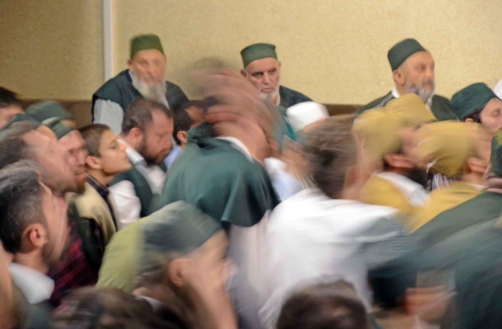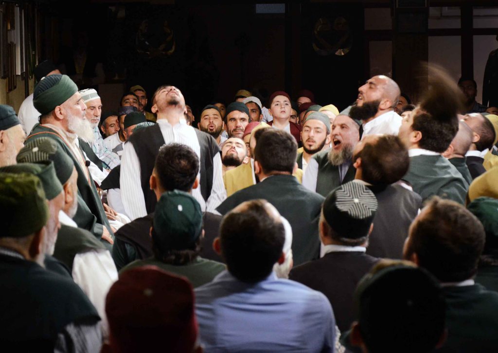 In downtown Istanbul, Turks in religious garb filter into a large, multistory building. Behind the nondescript facade lies a majestic interior, where a group of about 500 men sway their heads back and forth while uttering rough, guttural chants that sound like the grating of a saw against wood. Some enter an ecstatic state of trance. One man shouts “Allah!” in a fit of spiritual fervor, his forceful movements causing his spectacles to be thrown from his face.