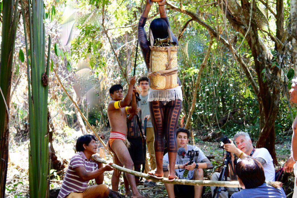 For the film adaptation of the story, our production team envisioned a scene catapulting a novice Kayapó actress into the heavens—using nothing more than a sapling, some vines and climbing rope for guy wires, and a little fancy camera work.
