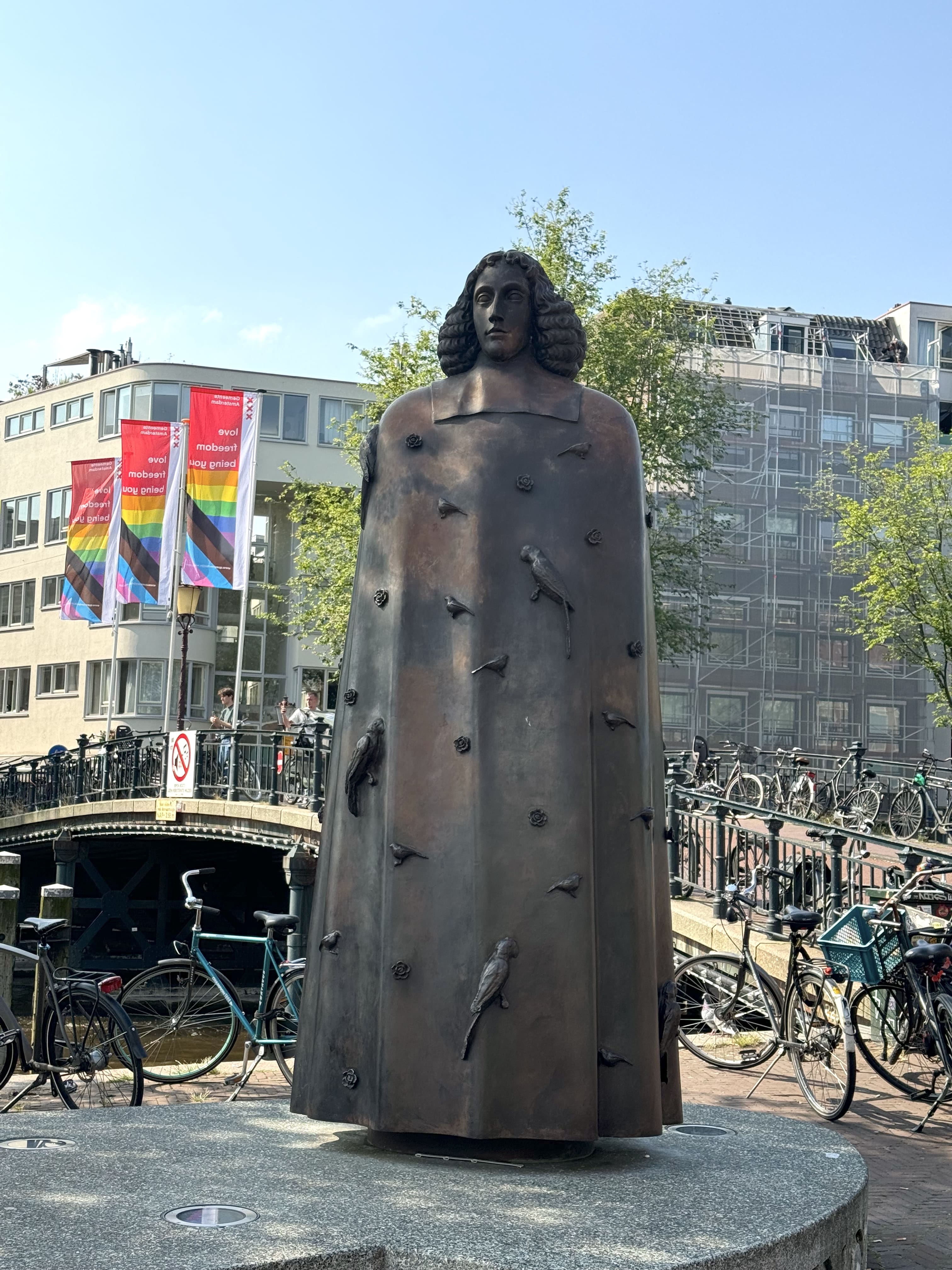This acceptance of the parakeets seems to align with central values of Dutch identity such as freedom and tolerance. In 2008, a statue of 17th-century Dutch philosopher Baruch Spinoza wearing a cloak covered in rose-ringed parakeets, sparrows, and roses was unveiled in front of Amsterdam City Hall. According to medical anthropologist Eileen Moyer, the sculptor Nicolas Dings included this imagery “to invoke thoughts of cultural diversity and tolerance toward migrants.” Moyer, who is from the U.S., sees herself reflected in the parakeets. “They may be migrants to the city,” she writes, “but it’s quickly become their home.”