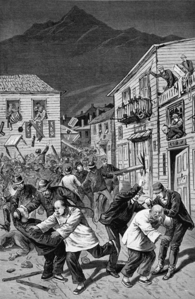 The event initially started with a dispute among Chinese immigrants, and then somehow a White mob and White police officers tried to intervene. And then it led to attacking the Chinese. In the end about 10 percent of the Chinese population was killed. The people who had witnessed their fellow Chinese being killed were not allowed to testify because, following an 1854 legal decision, People v. Hall, Chinese people, like Native Americans and African Americans, were denied their civil rights to testify against White Americans.