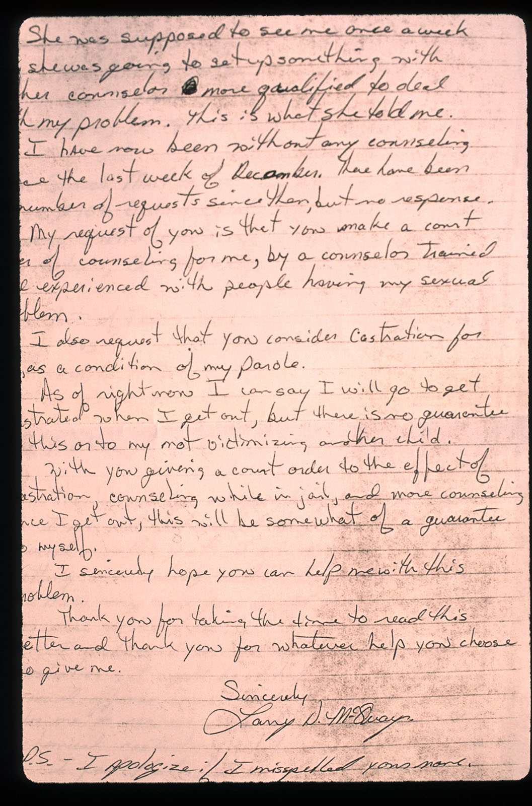 The reasons why men seek out children and youth for sex are numerous, and they grow out of singular histories in which many have themselves suffered from neglect and abuse. In therapy, offenders often reveal motives not driven by a desire for sex but rather ones that emerge out of fears of abandonment, emotional loneliness, an inability to trust adults in intimate relations, low self-esteem, or an opportunism not available with adult partners. Sexual transgressions can easily tend in the direction of a fetish or a perverse and unconscious wish to harm the object of their desire. Yet, of the men I observed in therapy, interviewed, read files on, and consulted their therapists about, the most common motivation was neither to harm nor to have sex with the child. Rather, most men wanted intimacy with something more abstract, such as vulnerability, an image of innocence, or the ambiguity we associate with puberty.