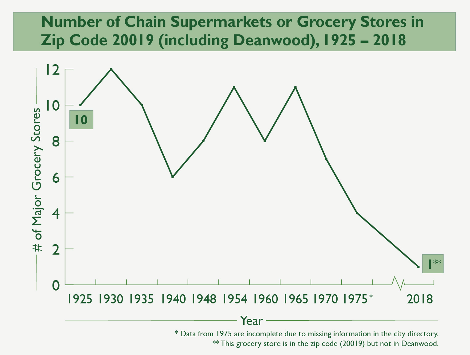 Chandler was born into this architecturally eclectic neighborhood. On the basis of oral histories found in archives, Reese mapped 11 different groceries that were open in Deanwood during its peak years, the 1930s and ’40s. African-Americans owned five. Jews, excluded by restrictive covenants from living in some other D.C. neighborhoods, owned six. For much of the mid-20th century, there was also a Safeway store.