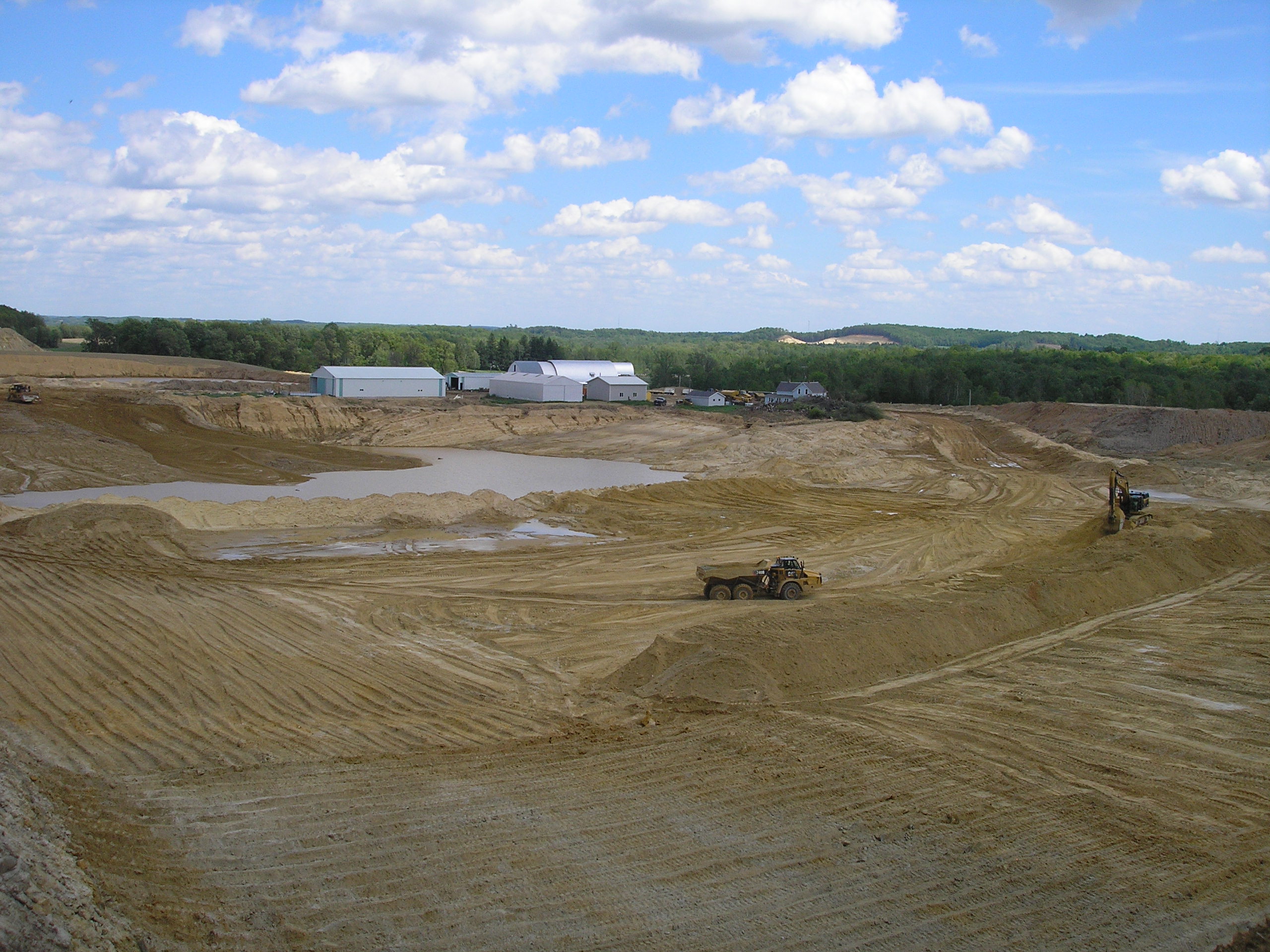 We reach the end of the field and push through some brush, emerging at the edge of the mine—a 20-foot drop into a flat moonscape that covers about 120 acres, half of it curving around a hill and out of view. Harlan looks grief-stricken as he stares intently into the massive pit containing a unique treasure: pure silica sand. An excavator scoops loads of it into a dump truck.