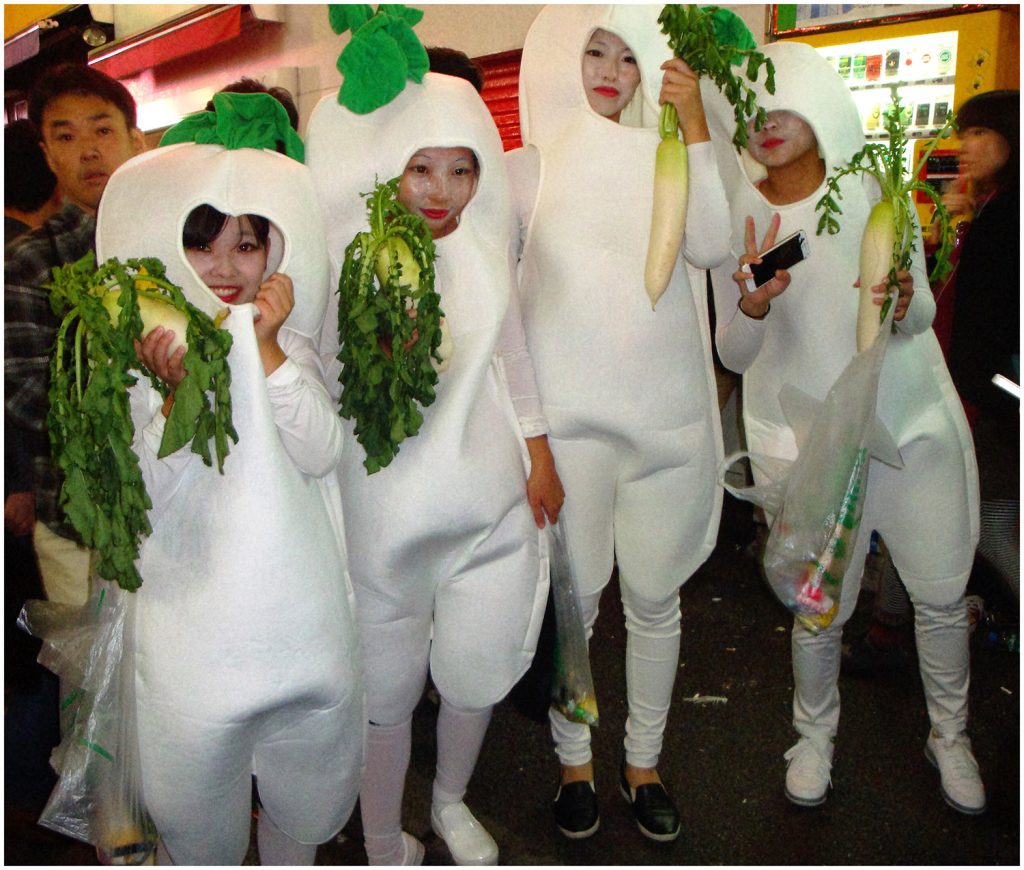 Halloween’s history supports that statement. Celtic Druids would hardly recognize a person costumed as an undead banana as a modern-day celebrant of Samhain. Nor would 19th-century Irish Catholics see their traditions in the bands of bloodied schoolgirls or human-sized daikon radishes running amok in Shibuya. “It doesn’t necessarily mean that we’re converging and becoming more alike,” argues Davis, because each culture makes the imports its own.