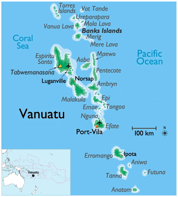 The mode of transportation got incrementally smaller at each stage of the journey—the large planes from Chicago to Los Angeles to Fiji, to a slightly smaller one to Port Vila (the capital of Vanuatu), where the curator met me. From there we traveled together via open-air taxi in the back of a pickup truck across the width of the island before taking a final small biplane to the island of Malekula.