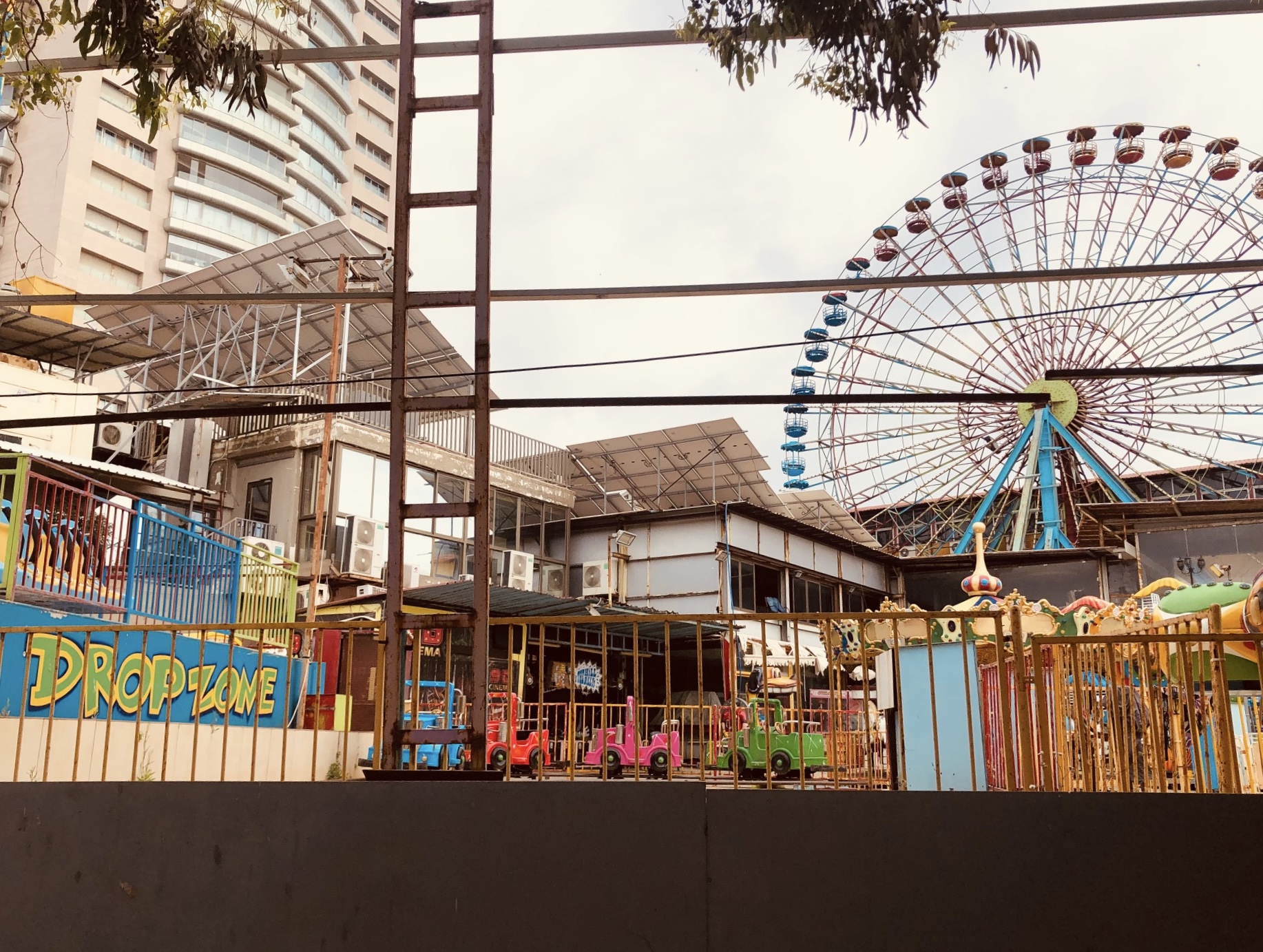 Back in Beirut, I noticed sparks flying on a veranda across the way one night. Concerned there might be a fire starting, I walked over to the wall of windows in the living room area and saw that workers were putting together a metal frame. The next day they used a pully to hoist up solar panels for installation.