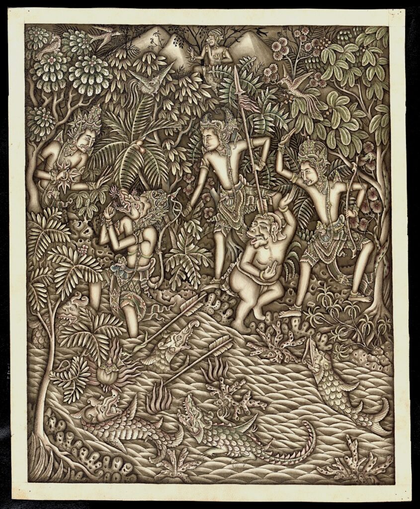 Balinese artists didn’t typically portray that kind of subject matter. Painting at that time mainly centered on religious, communal, and mythical themes and, in many cases, was made for palaces and temples. But the artists were willing to experiment.