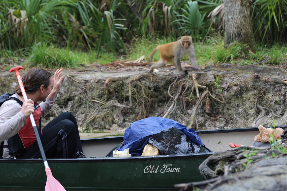 Daniels, for example, proved to be a careful student of monkey behavior. He taught Kirksey that macaques differentiate between people in canoes and kayaks (who usually do not bring food) and people on motorboats (who usually do).