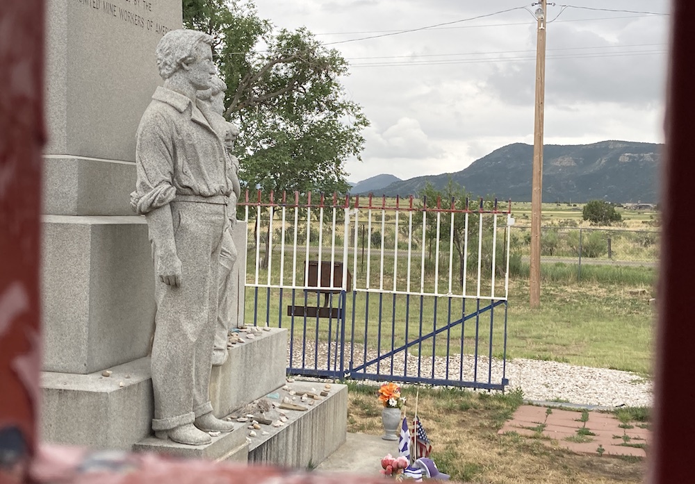 Ludlow was designated a National Historic Landmark in 2009. Mining had largely stopped half a century earlier, as industry turned to oil and gas, and the steel mills in nearby Pueblo replaced their coal-fired furnaces and coke ovens with electric systems. The UMWA erected a memorial in 1918 that suffered vandalism in 2003. A repaired monument was unveiled in 2005, along with what appeared in August to be a security camera. The site stands a lonely mile west of Interstate 25, enclosed by a fence whose gate swings open along with wind gusts.