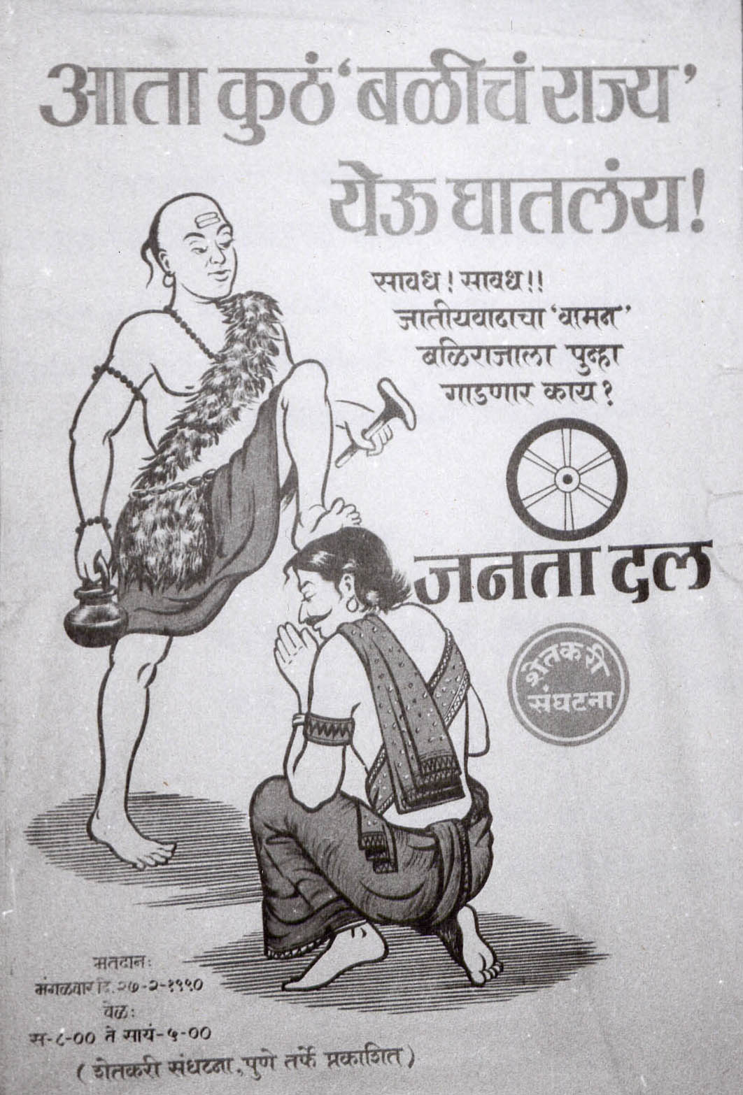 The call to restore Bali’s kingdom is a key window on these contradictions. Rural Maharashtrians identify deeply with this figure who, according to Hindu classical texts and living folklore, was profoundly honorable and unfairly deposed by the powerful Brahminical gods. But while Shetkari Sanghatana supporters were unanimous in their calls for Bali’s return, they differed sharply in their interpretations of what Bali and his kingdom meant as an ideal. For some, Bali represented the interests of “rural folk” in general. For others, he characterized the historically dominant and better-off agrarian castes. For still others, he embodied the poorest, most oppressed members of rural society.