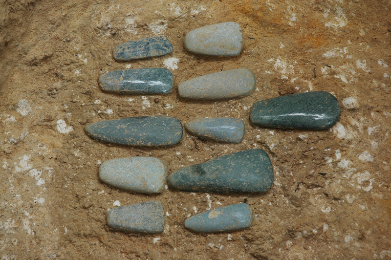 During their excavations, the researchers found large caches of greenstone axes—small, teardrop-shaped carvings. Such objects were likely used as offerings to deities such as the Maya sun god, and it is possible that they were part of midwinter rituals. “In one of the caches we found,” Inomata says, “those axes are oriented a little bit to the south, which is the general direction of the winter solstice sunrise.”