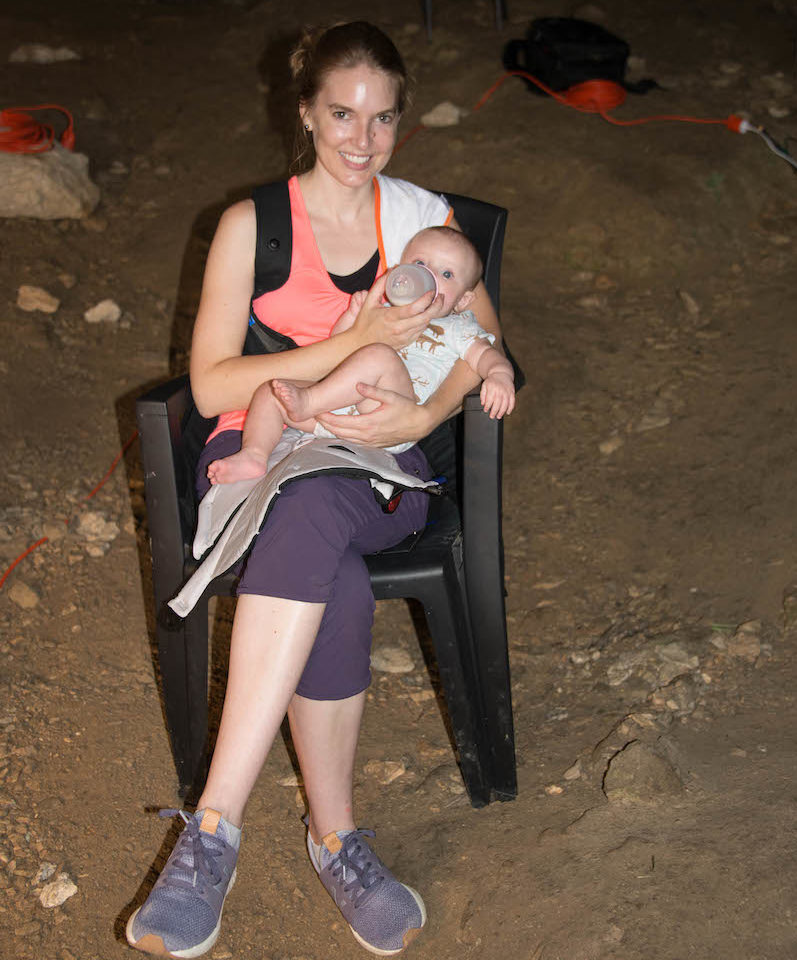 En la siguiente temporada, cuando trajimos a nuestra hija, volví a ir de excursión a la cueva la mayoría de las mañanas, luego volvía a bajar y me dirigía a la casa para amamantar, luego al laboratorio, luego de vuelta a amamantar. Mi bebé era lo suficientemente pequeño como para requerir cuidados las 24 horas del día. Tuve la suerte de que mi suegra estuviera dispuesta a viajar con nosotros para proporcionarnos el apoyo necesario. Utilizamos el dinero que habíamos estado ahorrando para cubrir los gastos, algo que una familia con un solo ingreso no podía hacer.