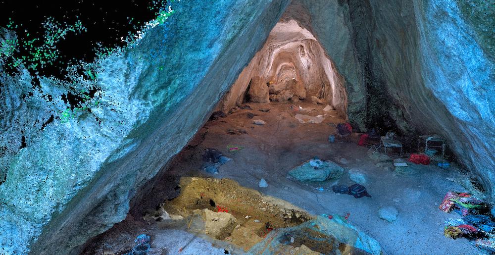 El yacimiento de la cueva de Arma Veirana, reconstruido digitalmente aquí, está ayudando a los paleoantropólogos a responder a preguntas sobre cómo los primeros humanos modernos pudieron extenderse con éxito por todo el planeta.